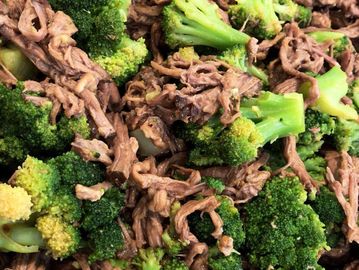 Flank Steak, Garlic, Ginger, Amino Acids, brown sugar substitute, cauliflower rice, sesame oil, hoisin sauce, broccoli